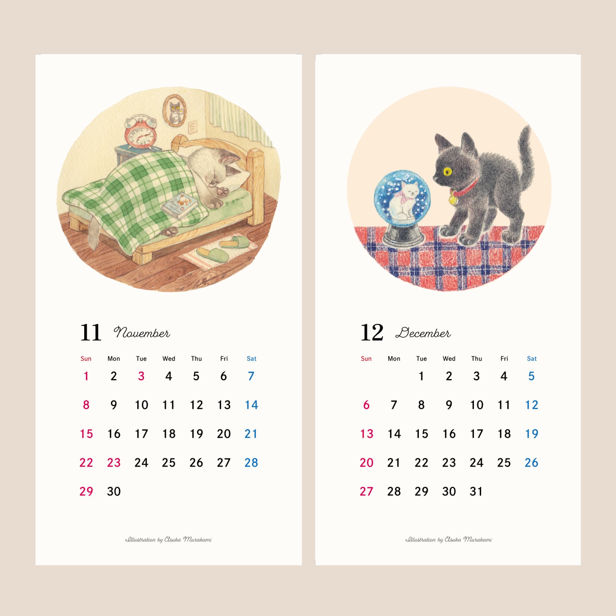 厚手で生成りのような温かみのある高級紙を使用しており、カレンダーとして使い終わった後はイラスト部分を切り取ってカードとして使用することもできます。